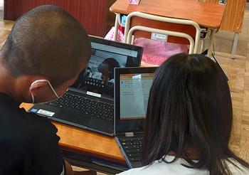 真ん中の端末に写っているのは、成木小の子供たちです。