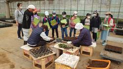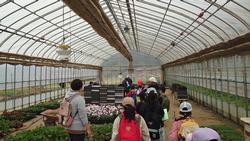 後半のビニールハウスでは、パンジーの苗植え作業の様子や