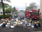 1・2年生が消防写生会を実施しました。ポンプ車と救急車が学校にきました。普段なかなか近くで見られない消防車を間近で見ながら、頑張って絵を描いていました。