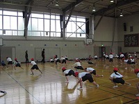 4年生のソーラン節の練習です。音楽が鳴ると自然に体が動きます。隊形の移動も子供同士で声をかけ合いながら取り組んでいました。