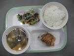 今日の給食。鶏肉のあまだれかけでした。たれがとてもおいしかったです。