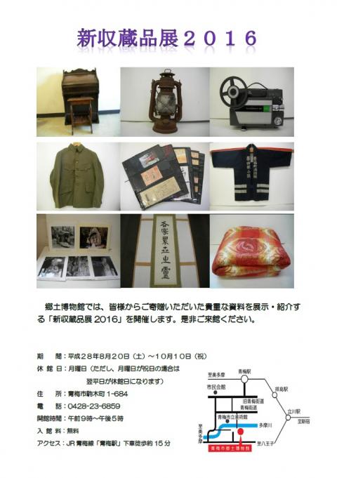 郷土博物館では、平成27年度に多くのみなさまよりご寄贈いただいた様々な資料を展示・紹介する「新収蔵品展2016」を開催いたします。みなさまのご来館をお待ちしております。