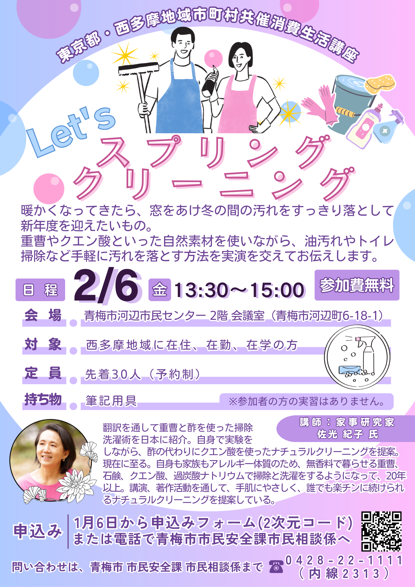 東京都・西多摩地域市町村共催消費生活講座 「Let's スプリングクリーニング」参加者募集
