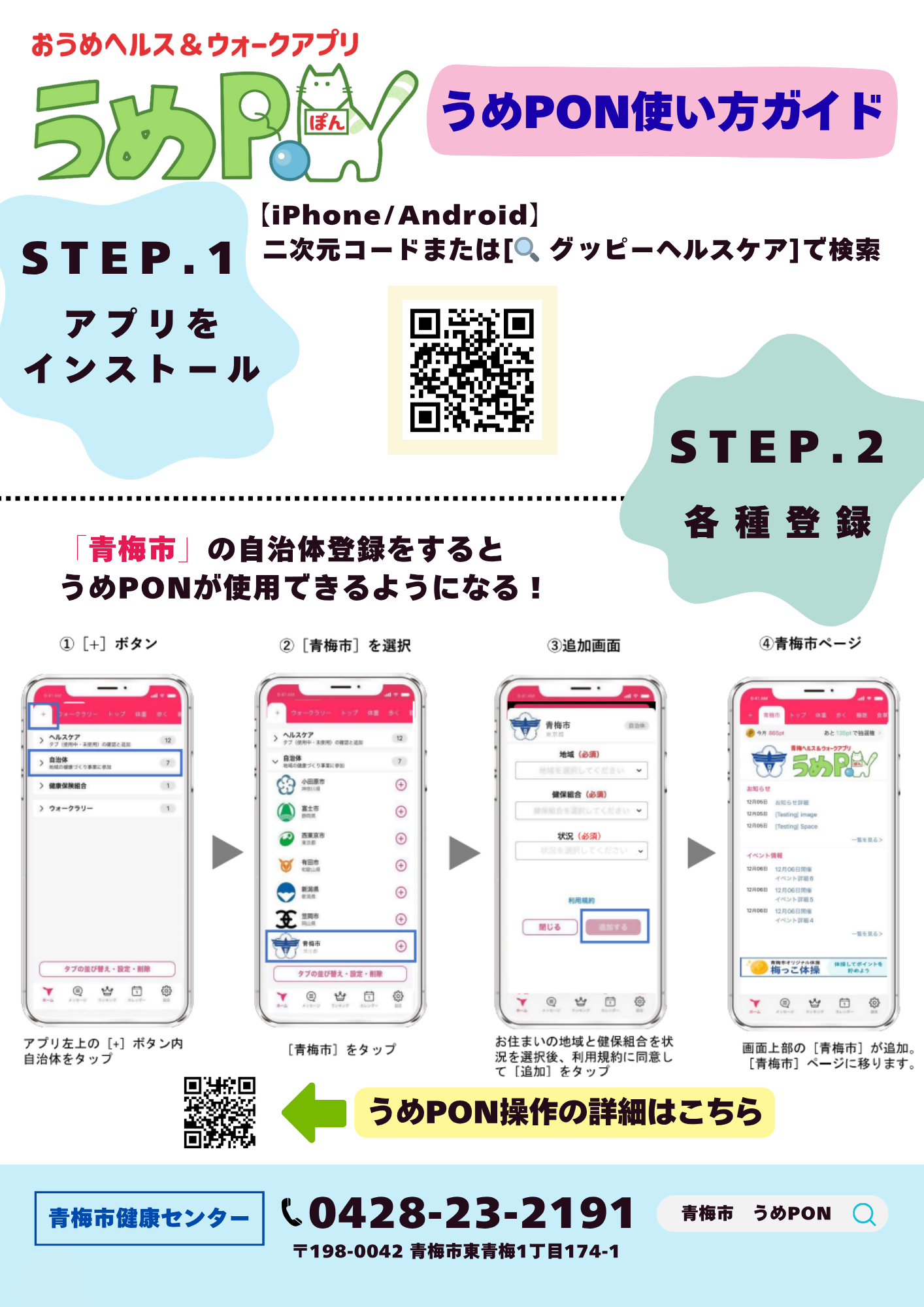おうめヘルス&ウォークアプリ 「うめPON」(うめぽん)